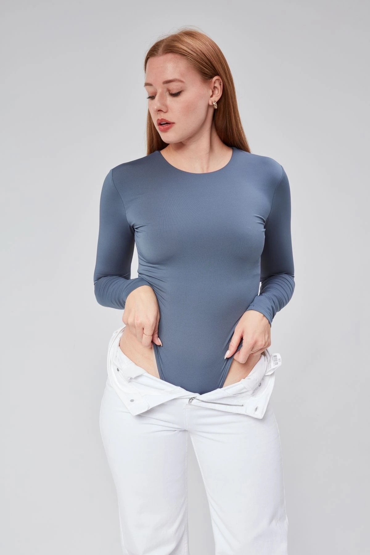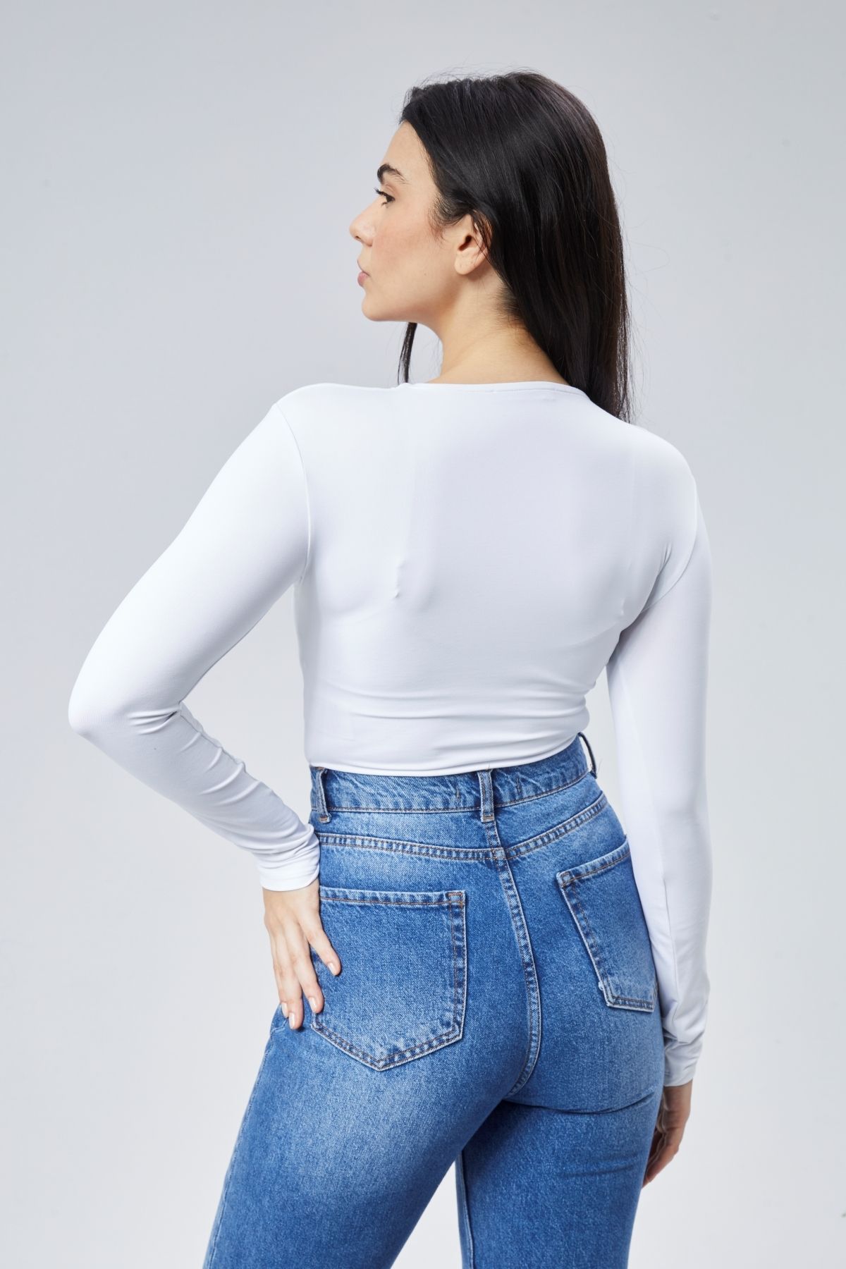 Astarlı Uzun Kollu Çıtçıtlı Body - Beyaz