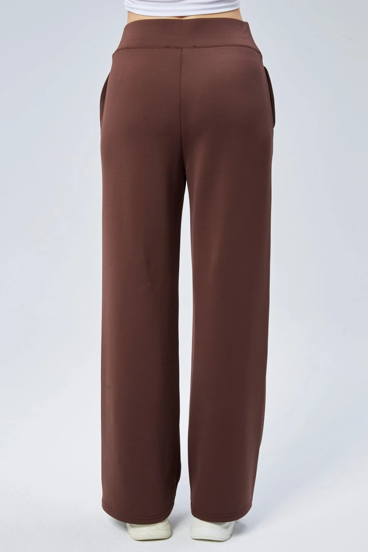 Kadın Likralı Düğmeli Palazzo Pantolon Oversize Yüksek Bel - Kahverengi